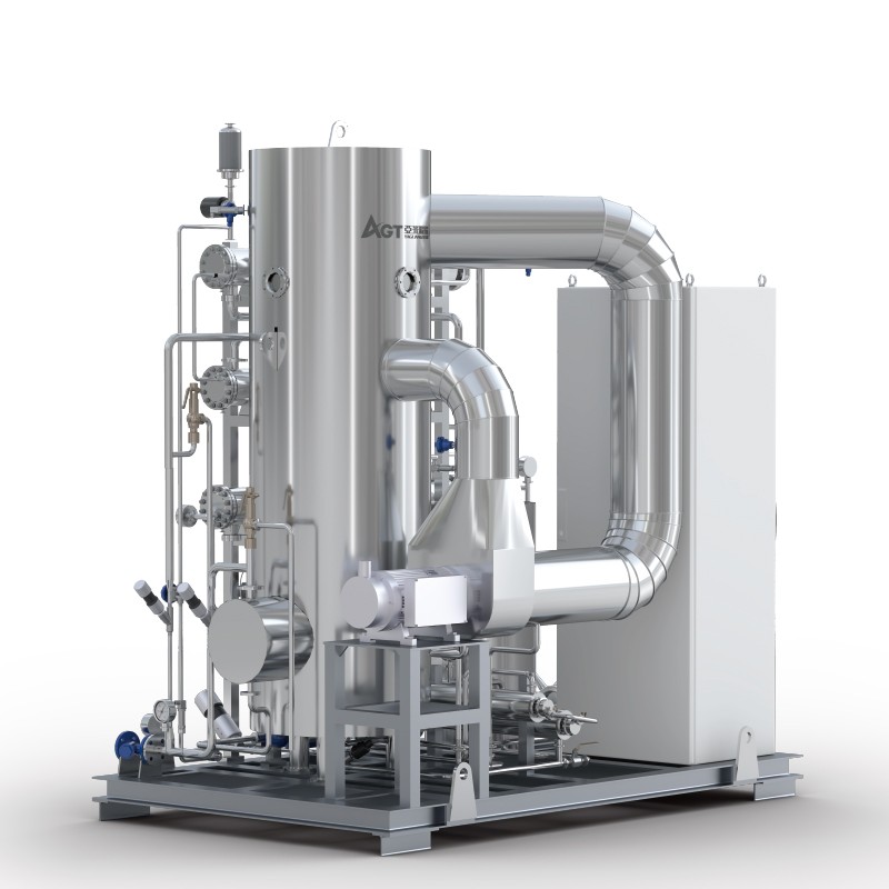 亞光最新研發生產的熱壓蒸餾水機使用了MVR節能技術,具有產水優質、節能效果顯著、安裝使用靈活等優點。亞光熱壓蒸餾水機產量可從1T/h至100T/h[1],既可為客戶提供大處理量中心式制水方案,基于其超低的產量范圍和撬裝模塊化設計,也可為客戶提供靈活的分布式注射用水生產解決方案。